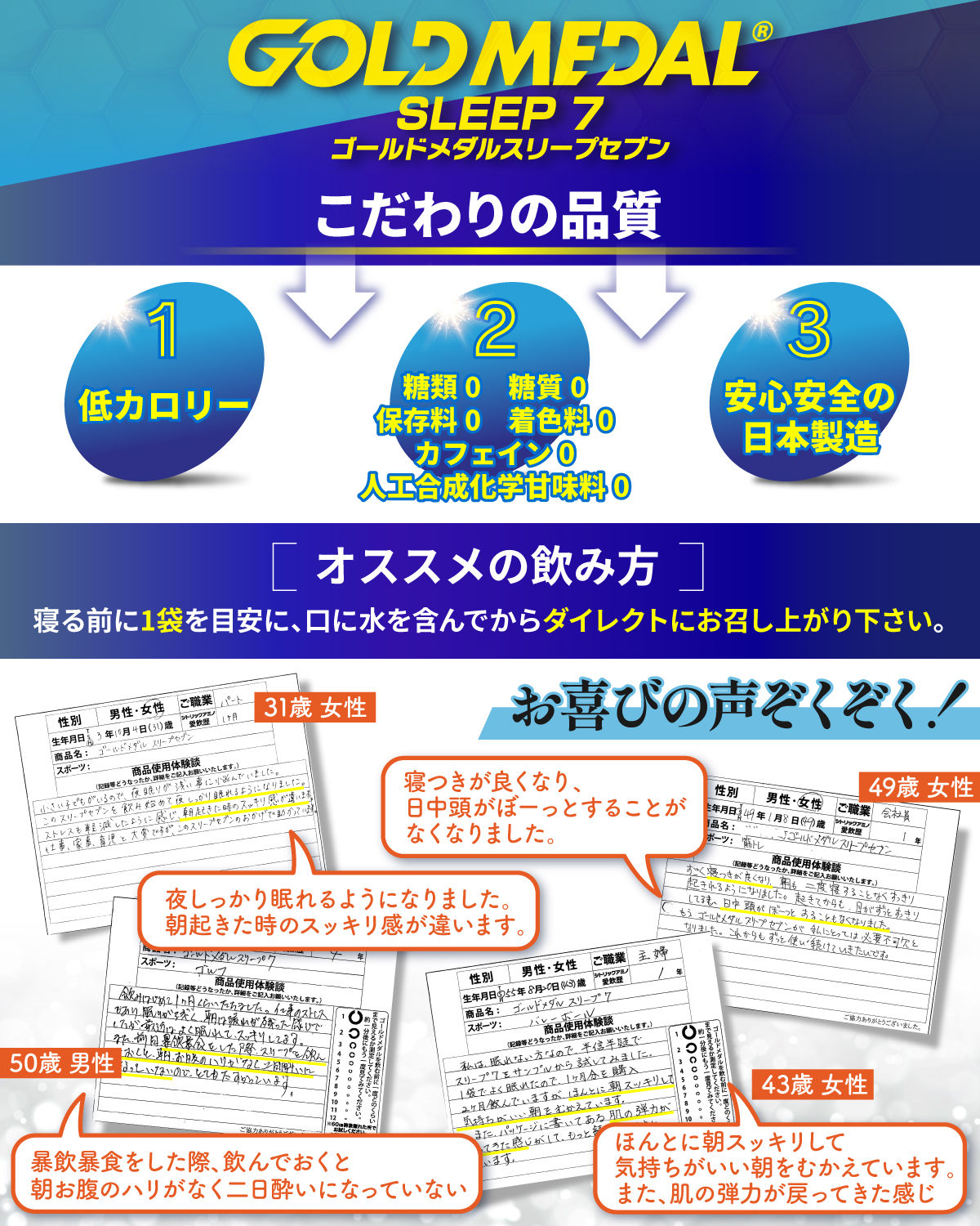 深い眠りを実感!7つの効果を消費者庁が認可!機能性表示食品 とってもお得なゴールドメダルスリープ7 (約3か月分)【寝つき】【眠りの深さ】【すっきりした目覚めをサポート】cp