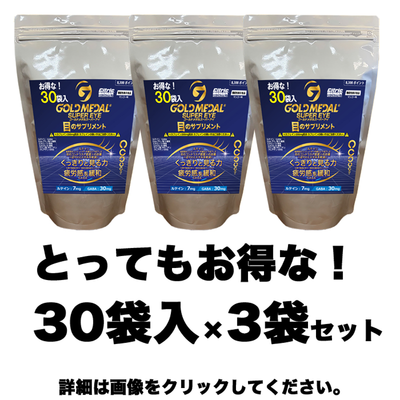 機能性表示食品 目のサプリメント!とってもお得なシトリックアミノゴールドメダル スーパーアイ 30袋入×3袋セット 【くっきり見る力】【疲労感を緩和】をサポートcp