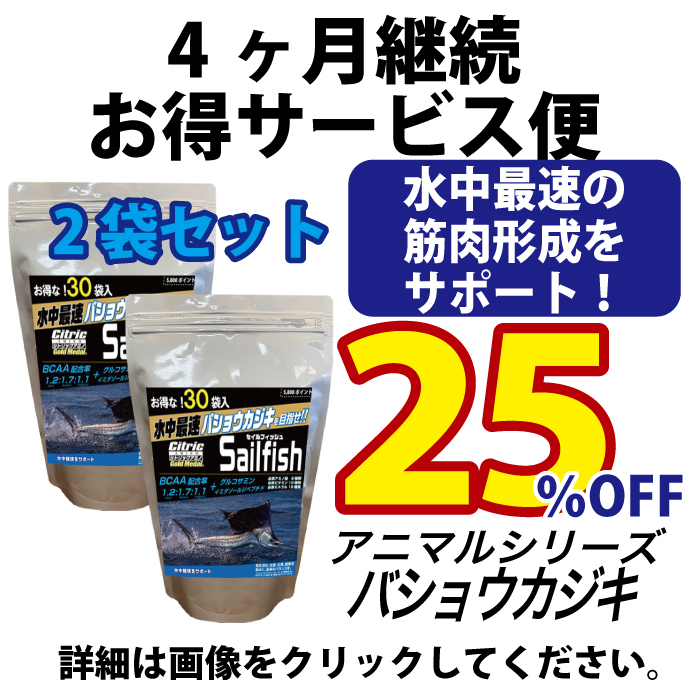 水中競技をサポート! シトリックアミノアニマルシリーズ【バショウカジキ】お得な30袋入 ※540円もお得cp